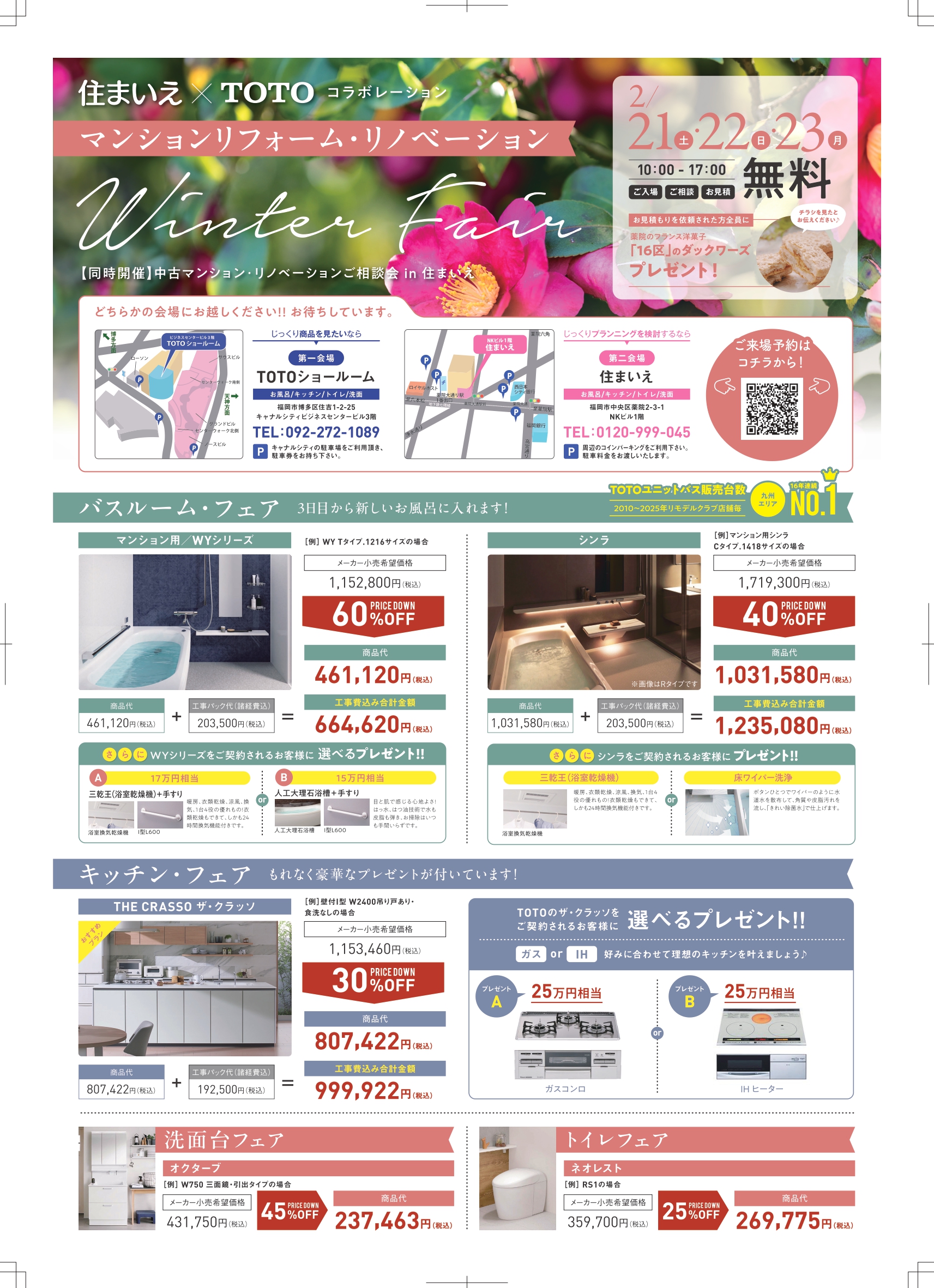 2/21(土)・22(日)・23日(月) マンションリフォーム・リノベーションフェア【住まいえ×TOTO】