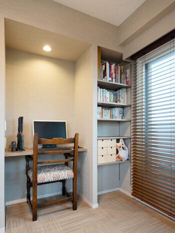 | お客様のご要望 | キッチン前の空間を使いやすく、ご主人様のPCスペースを広げたい |
