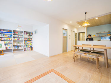 お部屋の中で、一番のお気に入りの空間です。 窓に面した明るい畳コーナーは、Y様のお手持ちの大好きな書籍が壁面収納に納まり、圧巻です。