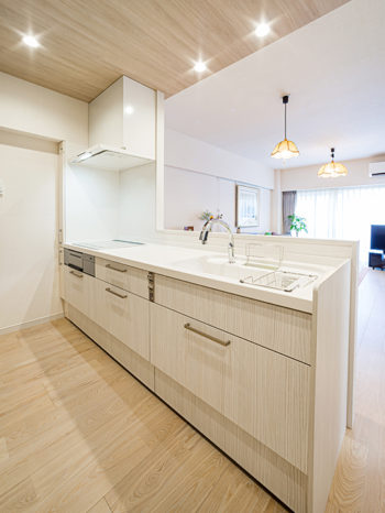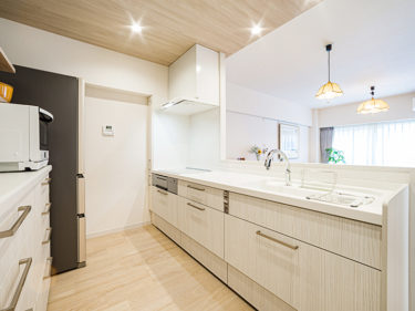 | お客様のご要望 | 物件探し~リノベーションまで、ご依頼頂きました。キッチンは明るく開放感のあるゆとりの空間にしたい。家事動線や、将来的に安心安全に暮らせるように。 |