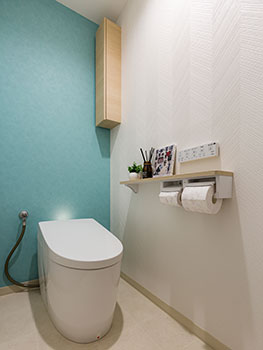 奥様が好きなブルーグレーの色をトイレに使ってトイレをお好みの空間に仕上げたました。