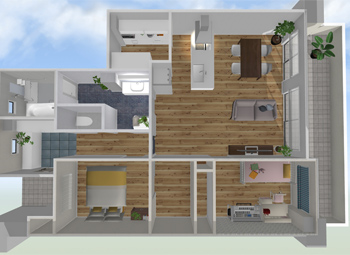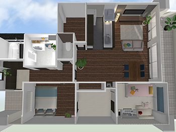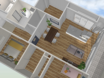 リビングは壁を取り払い、より広いスペースを確保します。