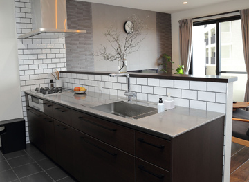 【シックな配色、照明や家具にもご夫婦のこだわり満載のキッチンリノベーション】博多区 O様邸