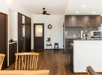 | お客様のご要望 | 落ち着くキッチン空間と大容量の収納スペースを作って欲しいとのご要望でした。 |
