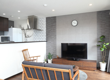 TV面のエコカラットはお部屋全体が暗くなりすぎないよう2色使いの配色です。