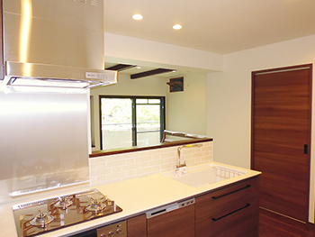 シンク前のウォール部分を外してオープンにしました。視界が開けて気持ちがいいです。