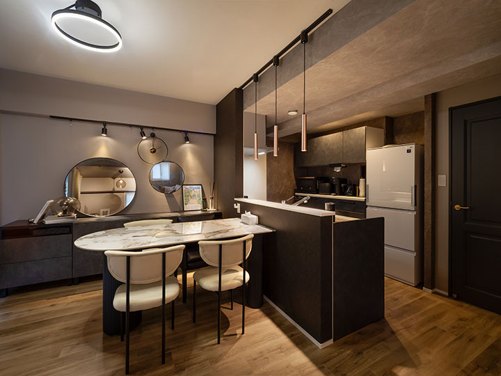 ライティングにもこだわり、ホテルのような大人で上品な空間に仕上がりました。