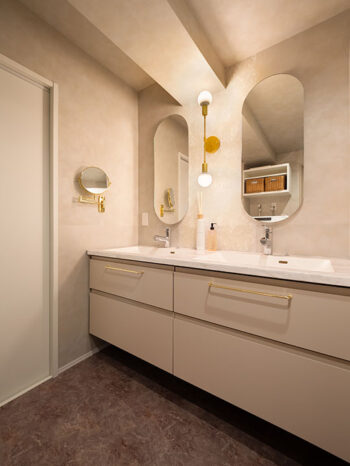 洗面所は2ボウル2ミラー!忙しい朝もおふたり並んで使用できます。