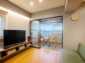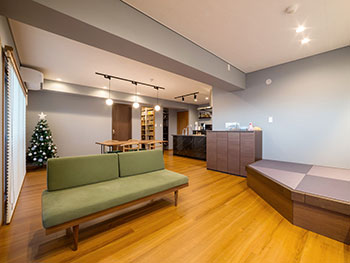 ・リビングの一角をインナーバルコニー ・間接照明等の照明プラン ・落ち着いた空間になるよう全体の色合いのコーディネート ・カーテン(プリーツスクリーン)のご提案 |