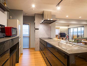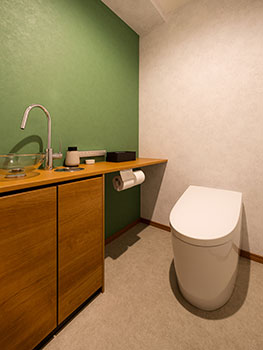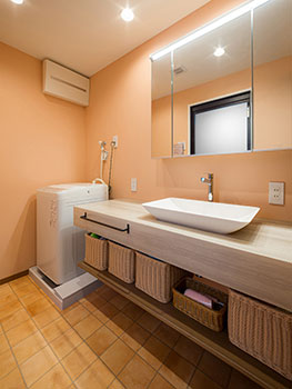 | 使用商材 | ・防音室:大建 ・建具:大建 ハピア ・天井:大建 クリアトーン(調湿消臭効果あり) ・キッチン:タカラスタンダード レミュー ・ユニットバス:TOTO WY ・洗面;アイカ スマートサニタリーU ・トイレ:TOTO ネオレスト(手洗いは造作) |