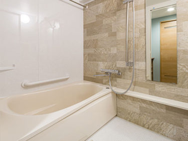 まだ新しかった換気乾燥暖房機は再利用しつつ、お風呂も新しい空間となりました。